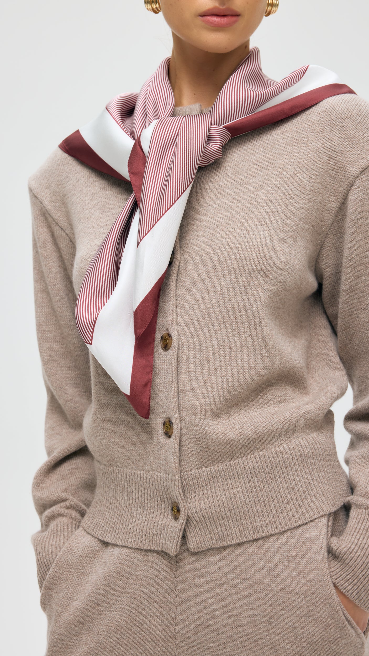DIAGONAL PINSTRIPE SILK TWILL SCARF IN OXBLOOD AND CREAM