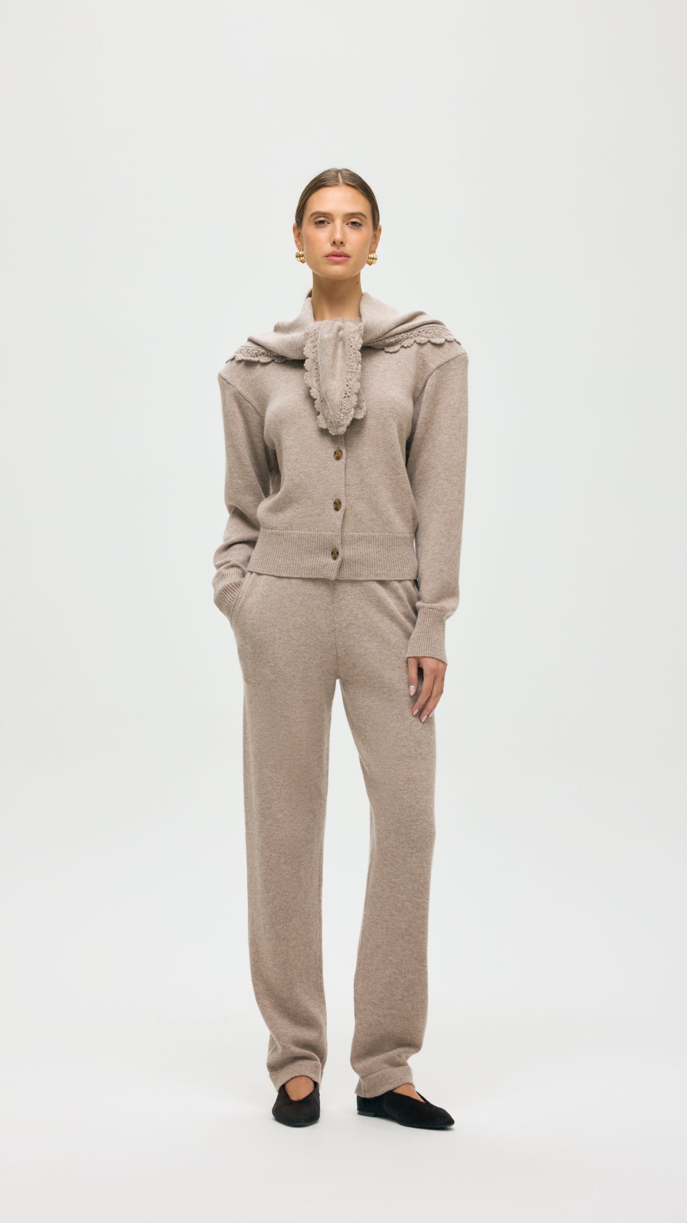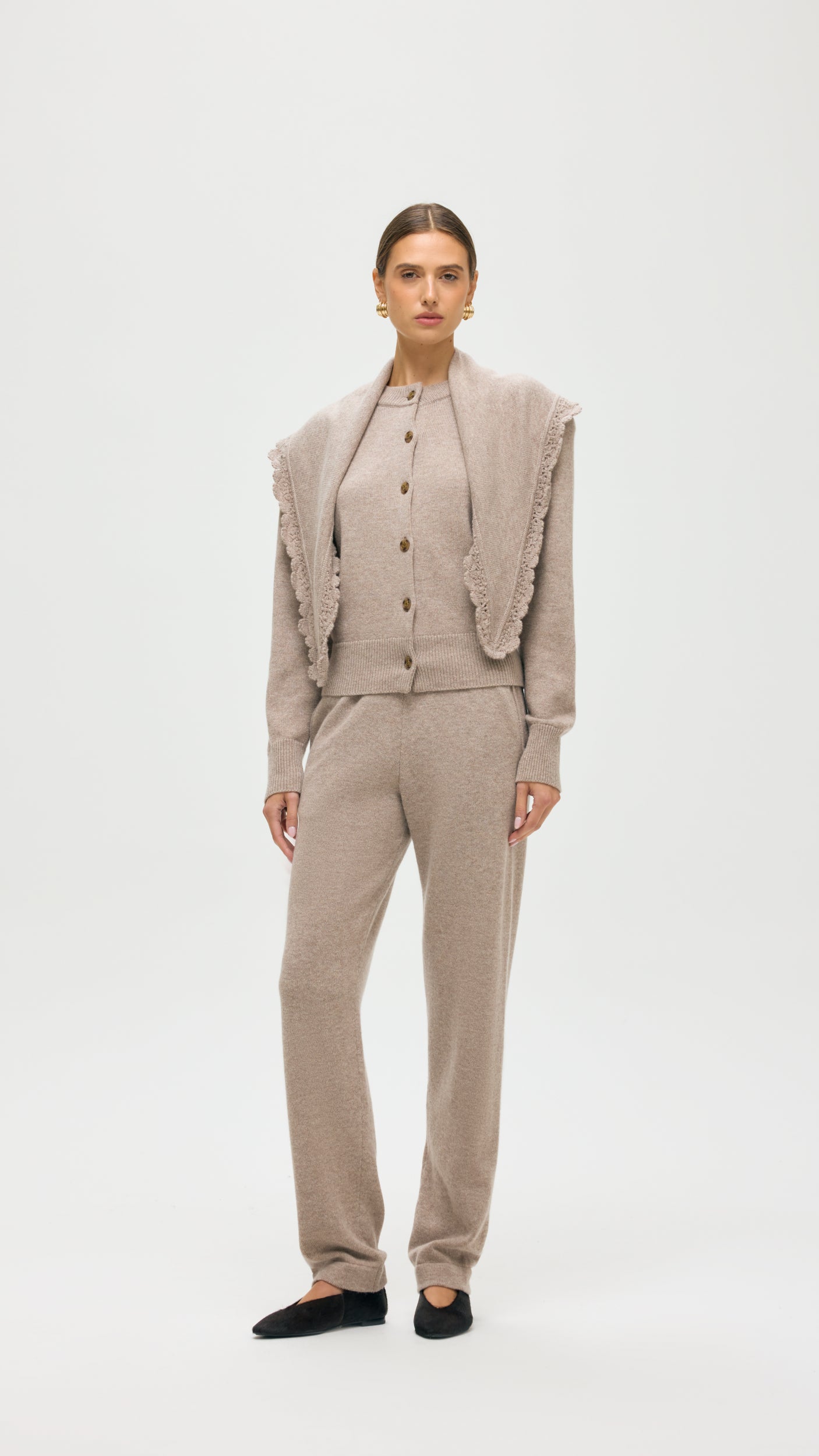 CASHMERE AND WOOL LACE TRIM KNIT SCARF IN FLAX