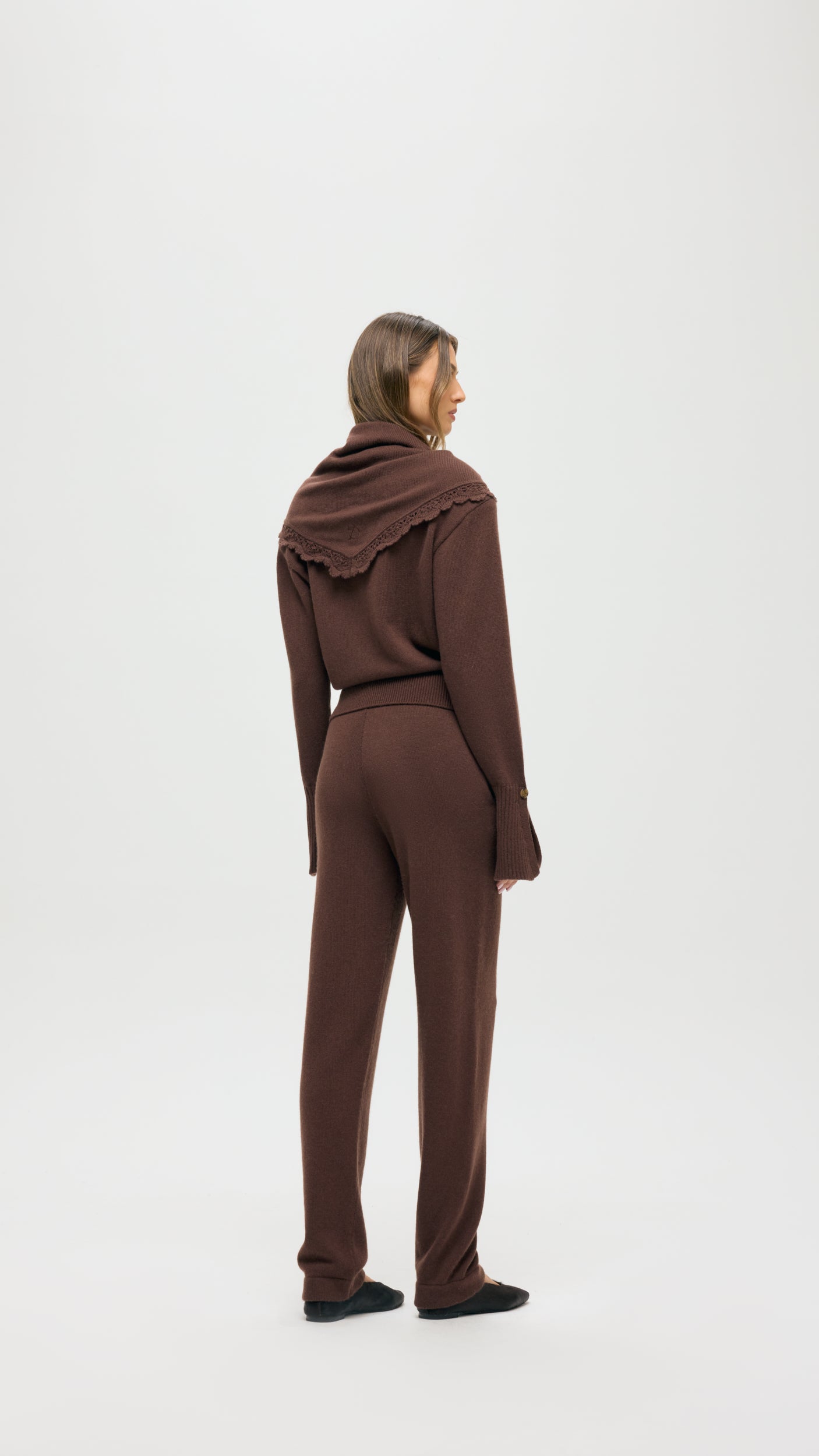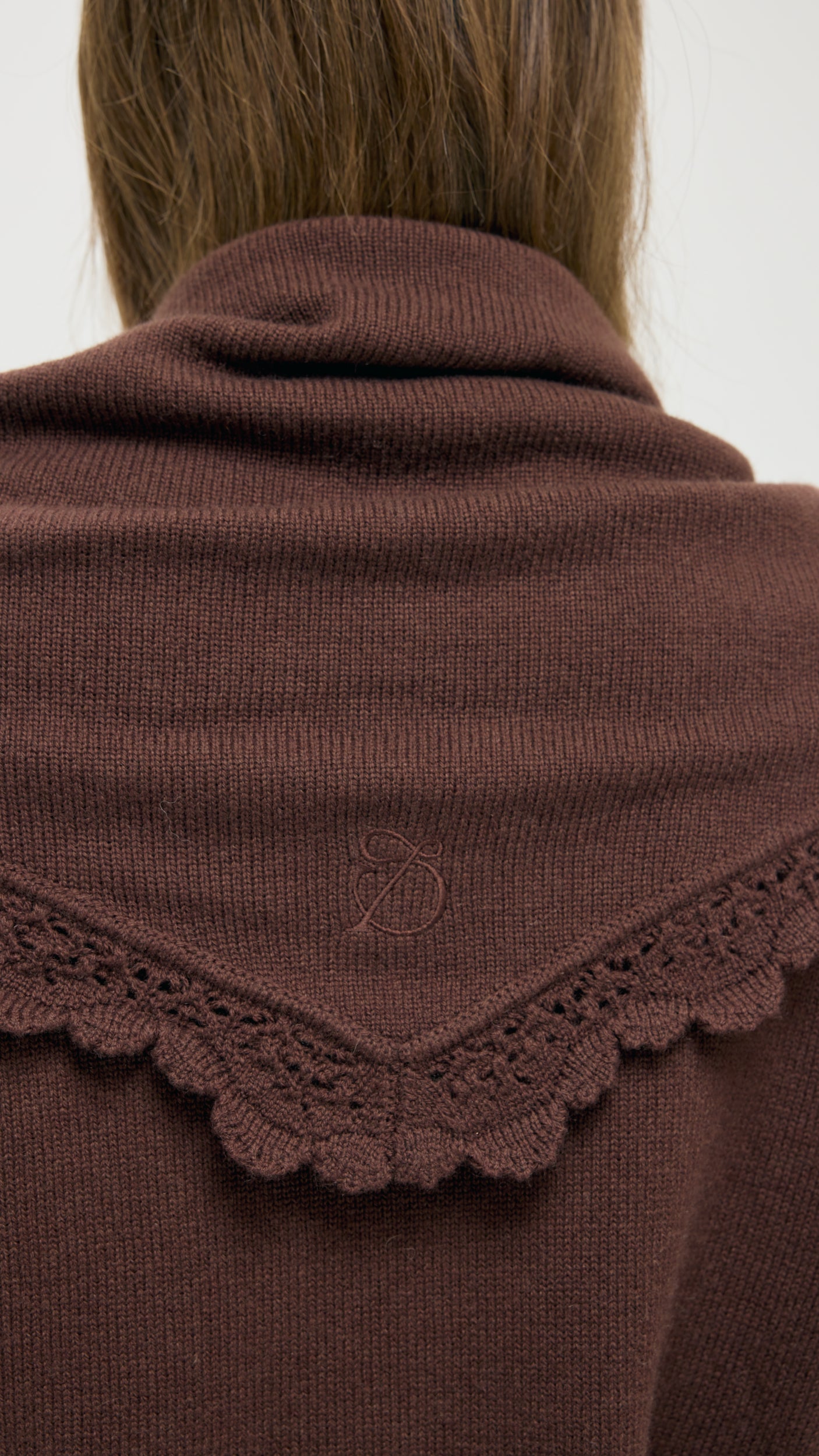 CASHMERE AND WOOL LACE TRIM KNIT SCARF IN MOCHA