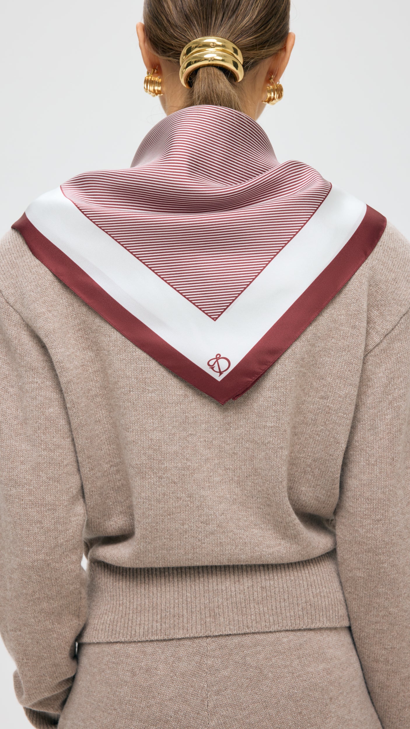 DIAGONAL PINSTRIPE SILK TWILL SCARF IN OXBLOOD AND CREAM
