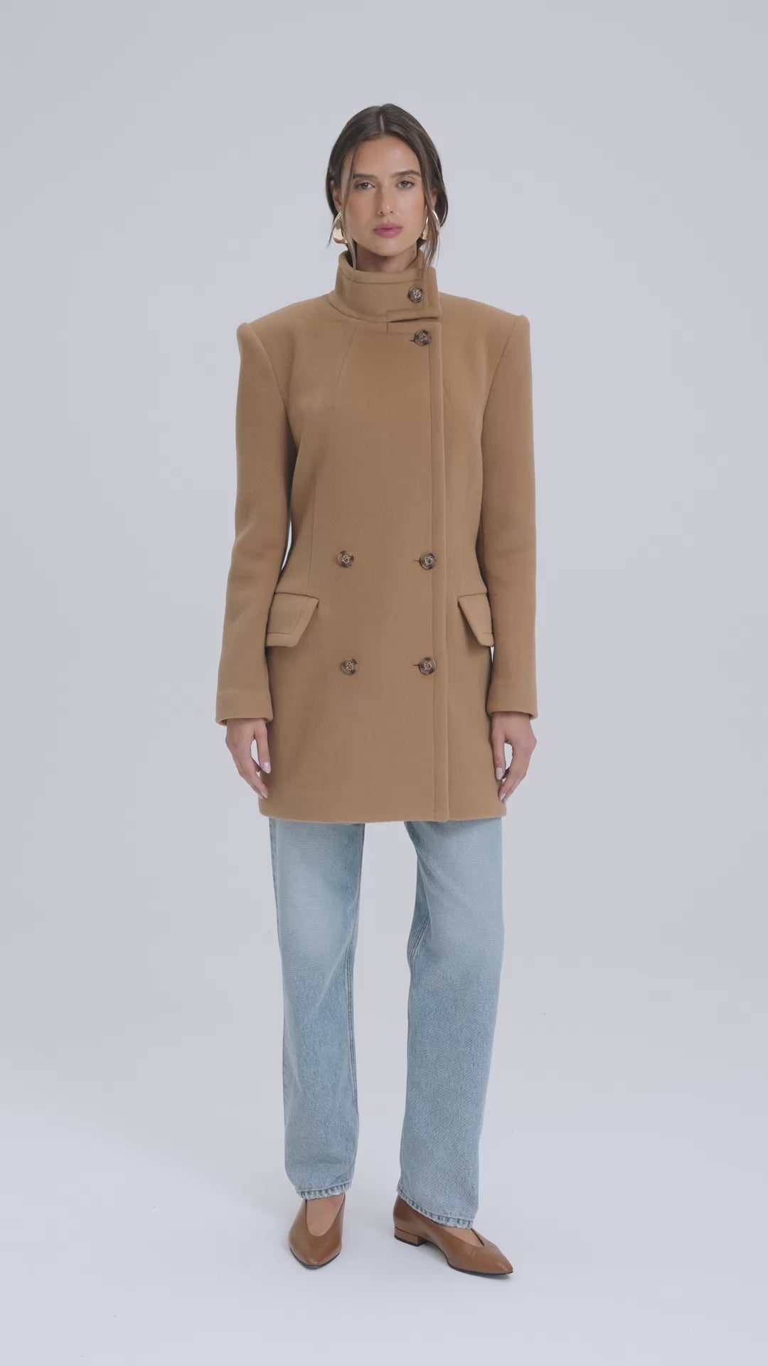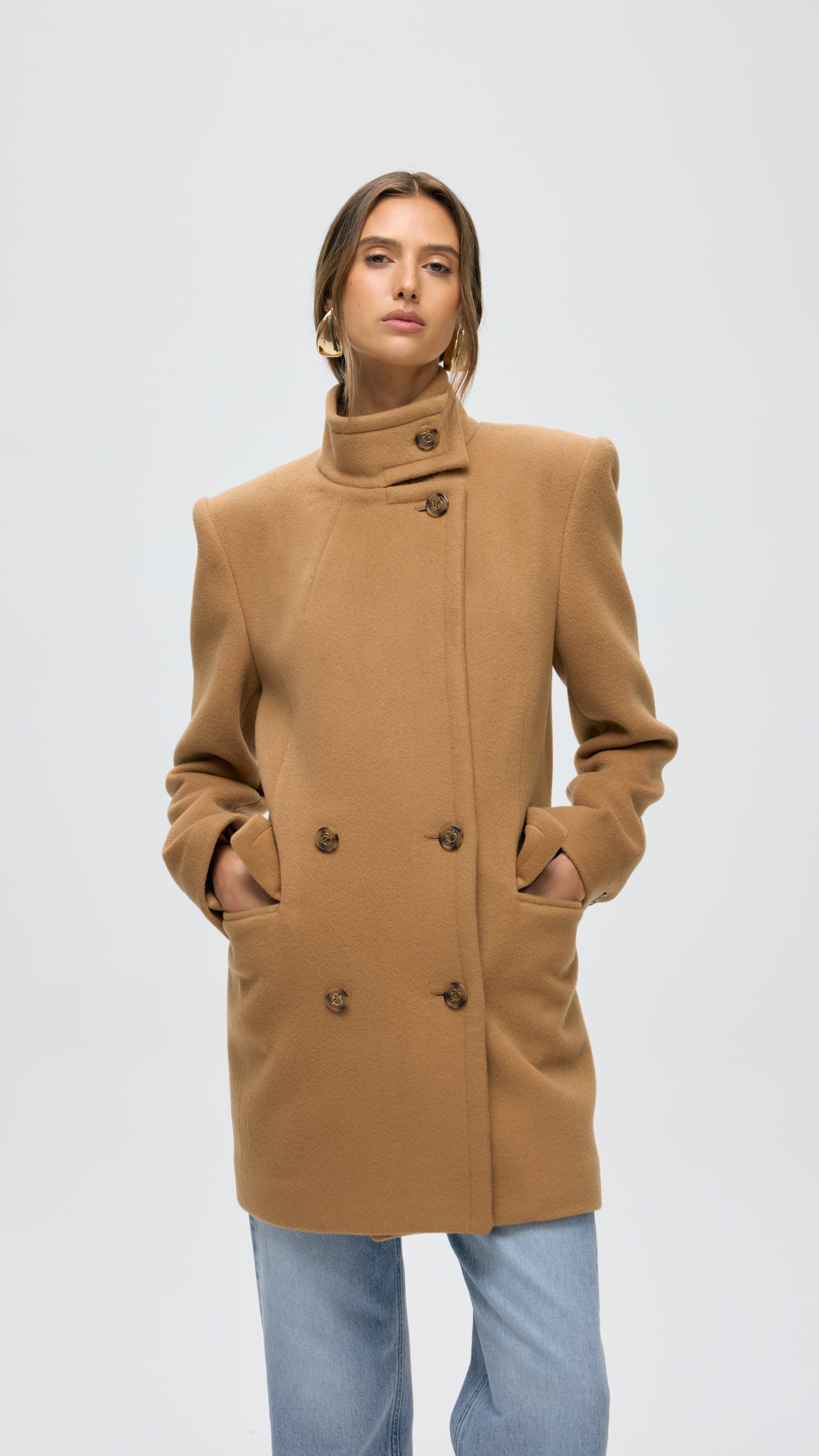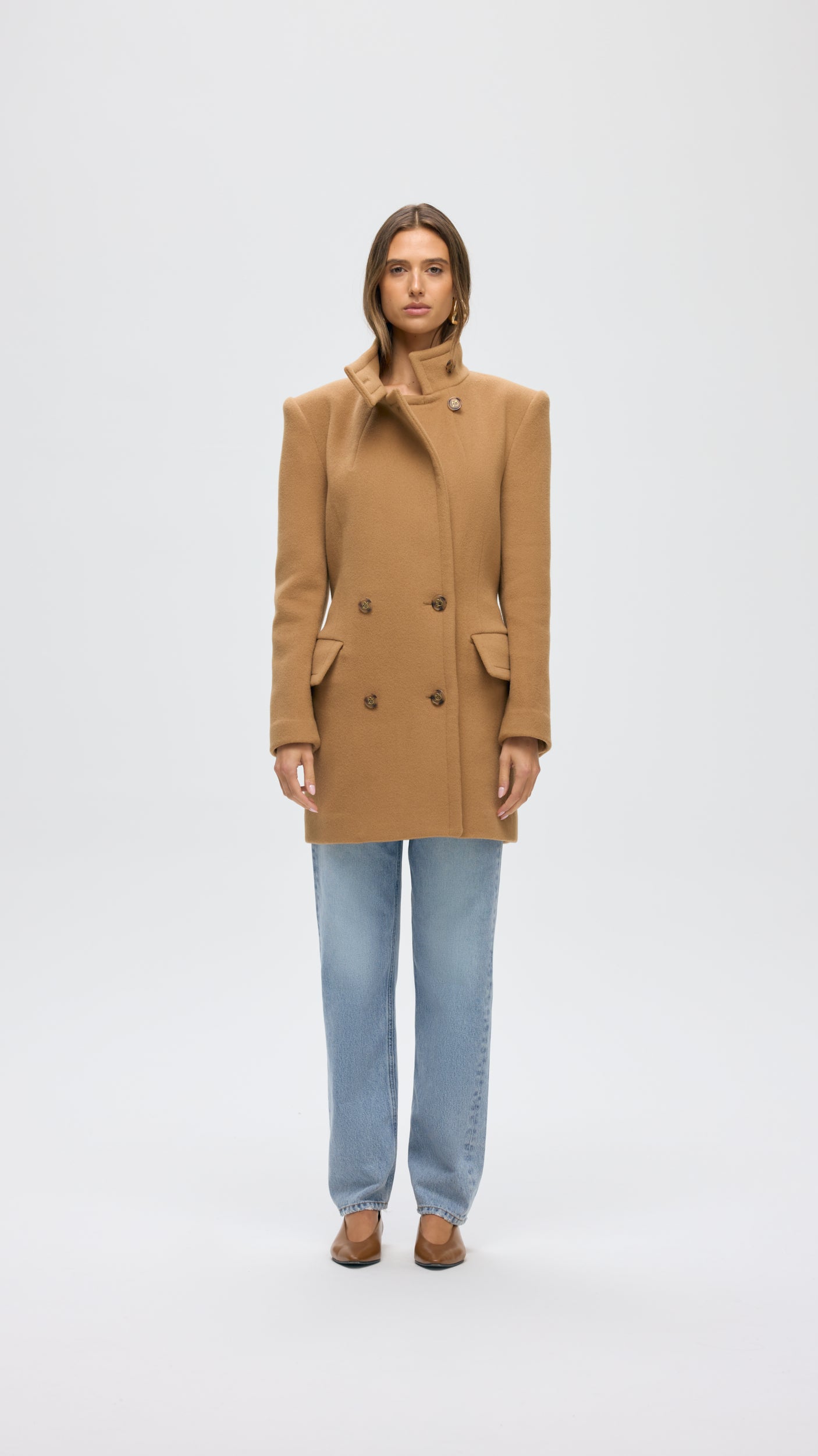 DOUBLE BREASTED CASHMERE AND WOOL JACKET IN TAN