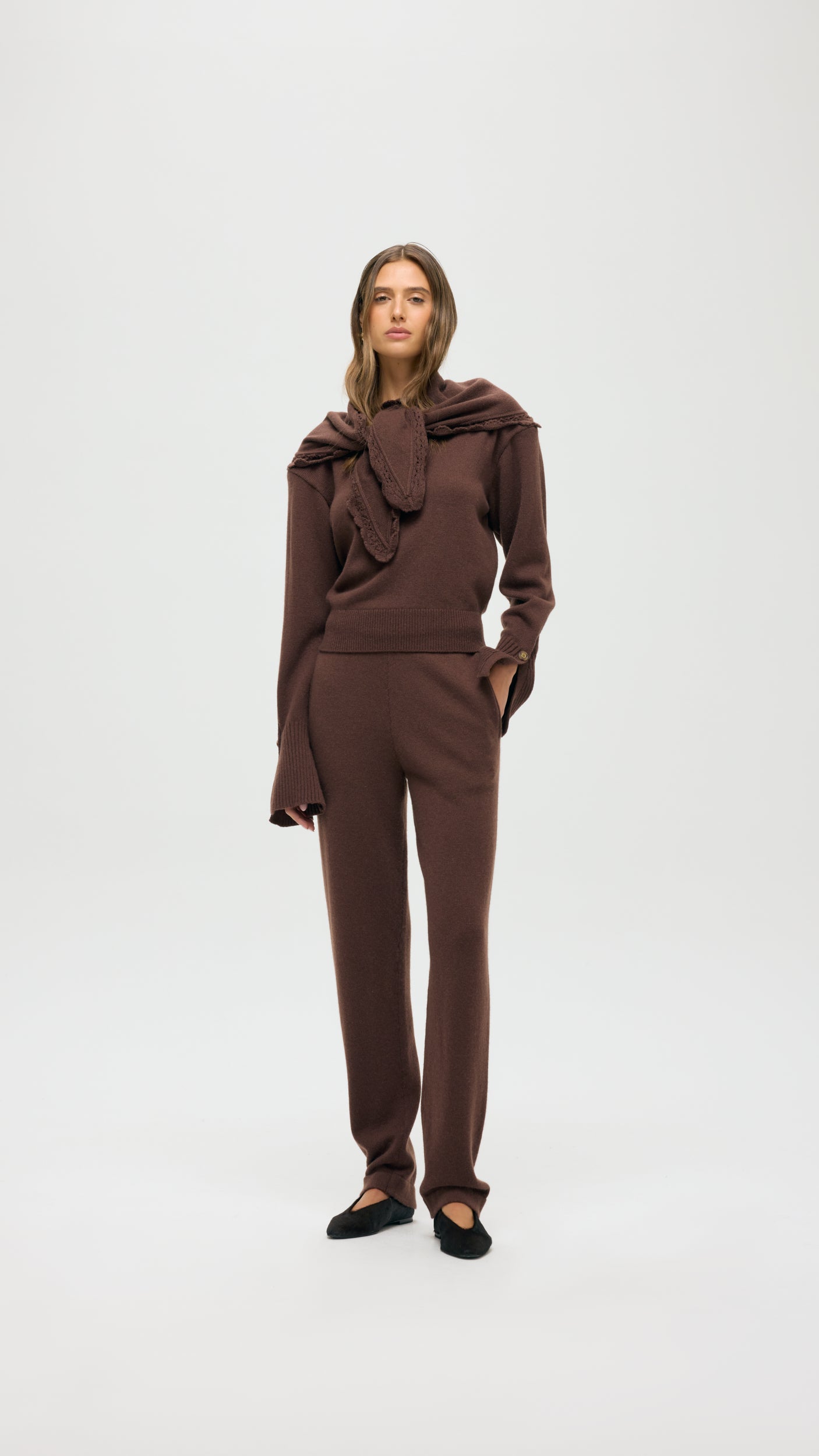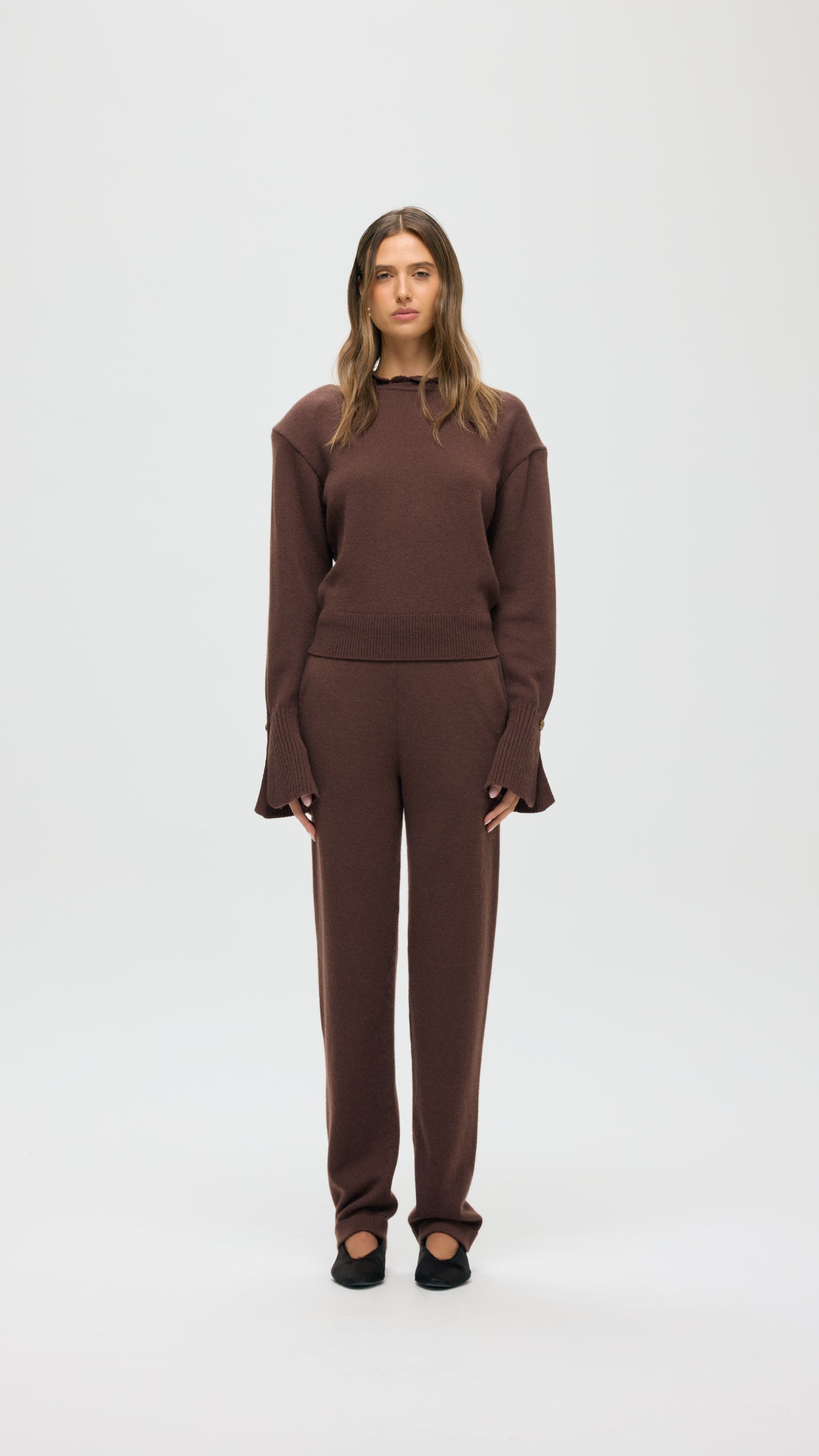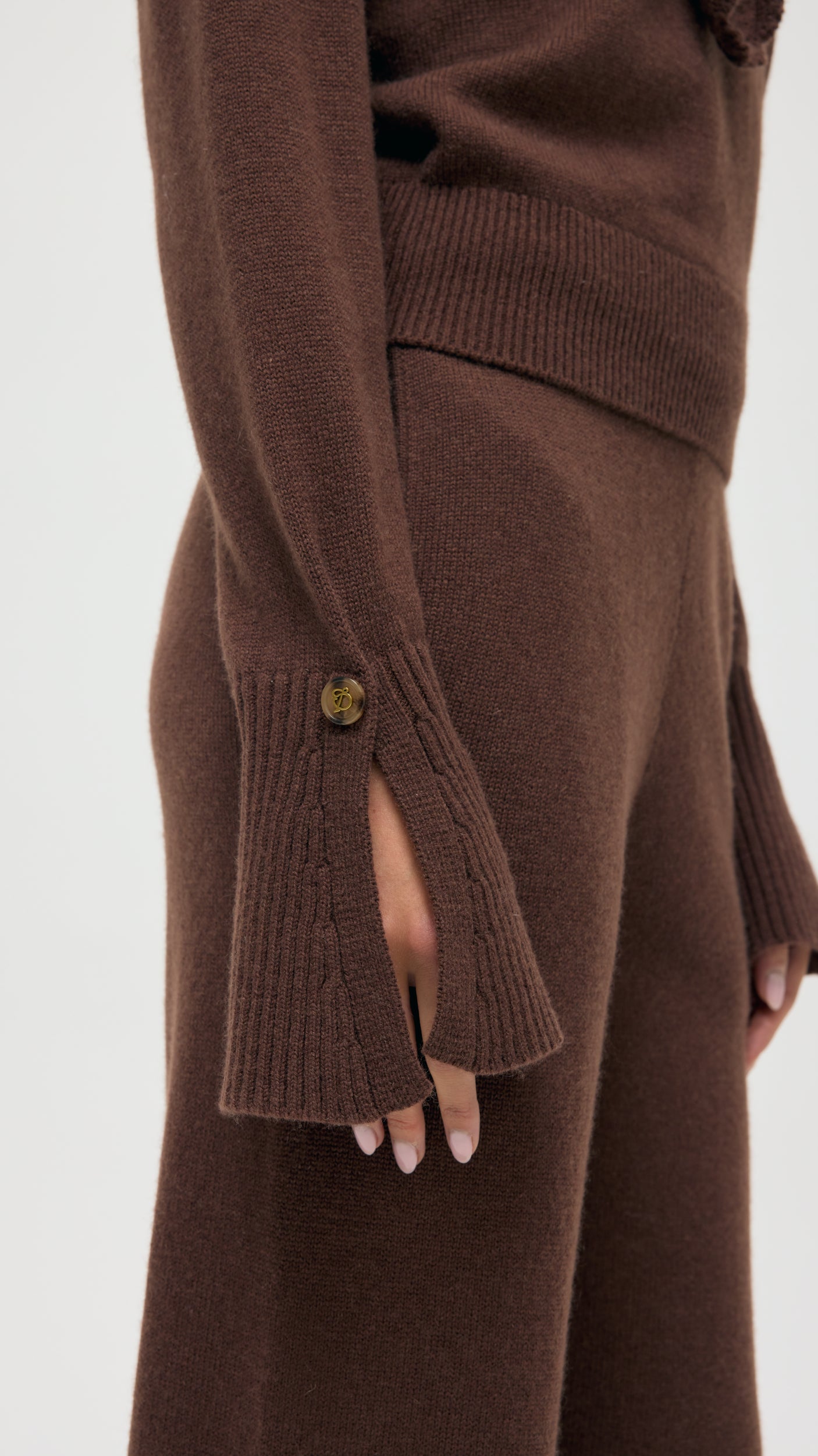 HIGH-NECK CASHMERE AND WOOL KNIT JUMPER IN MOCHA