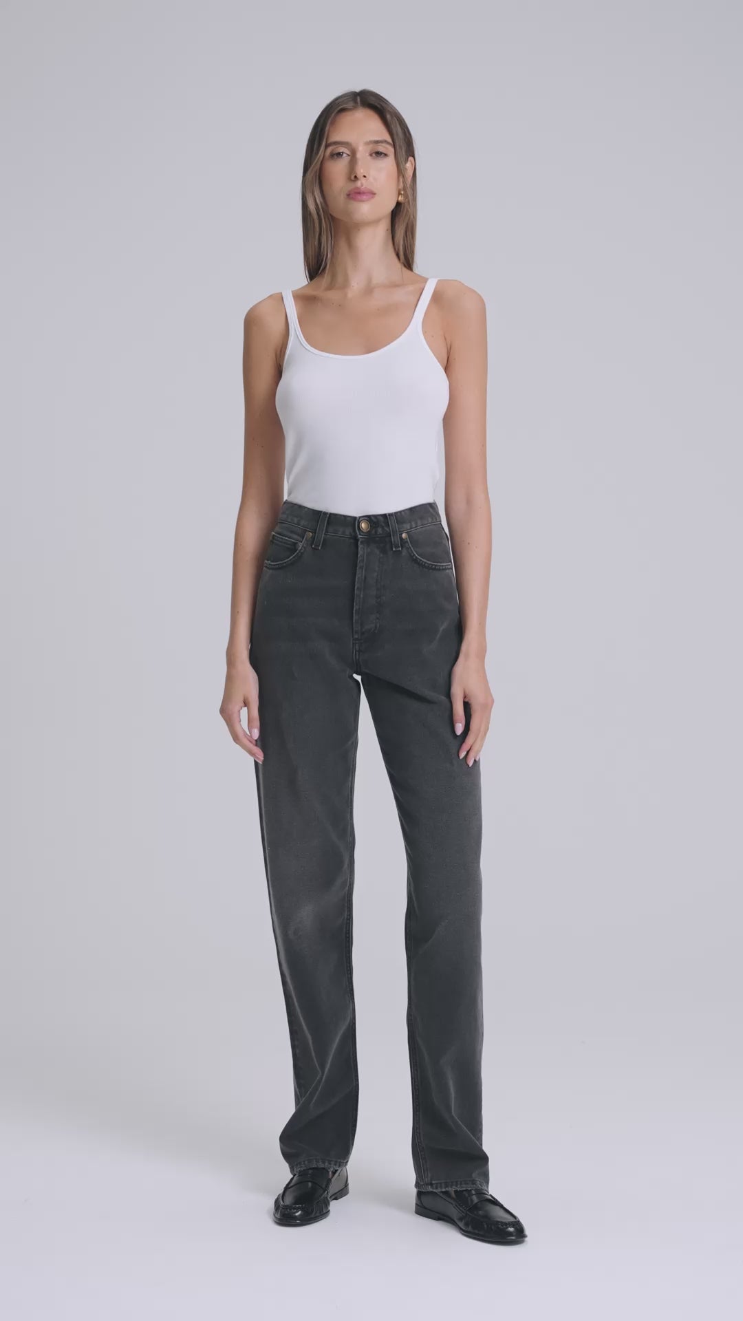 HIGH-RISE STRAIGHT COTTON JEANS IN BLACK