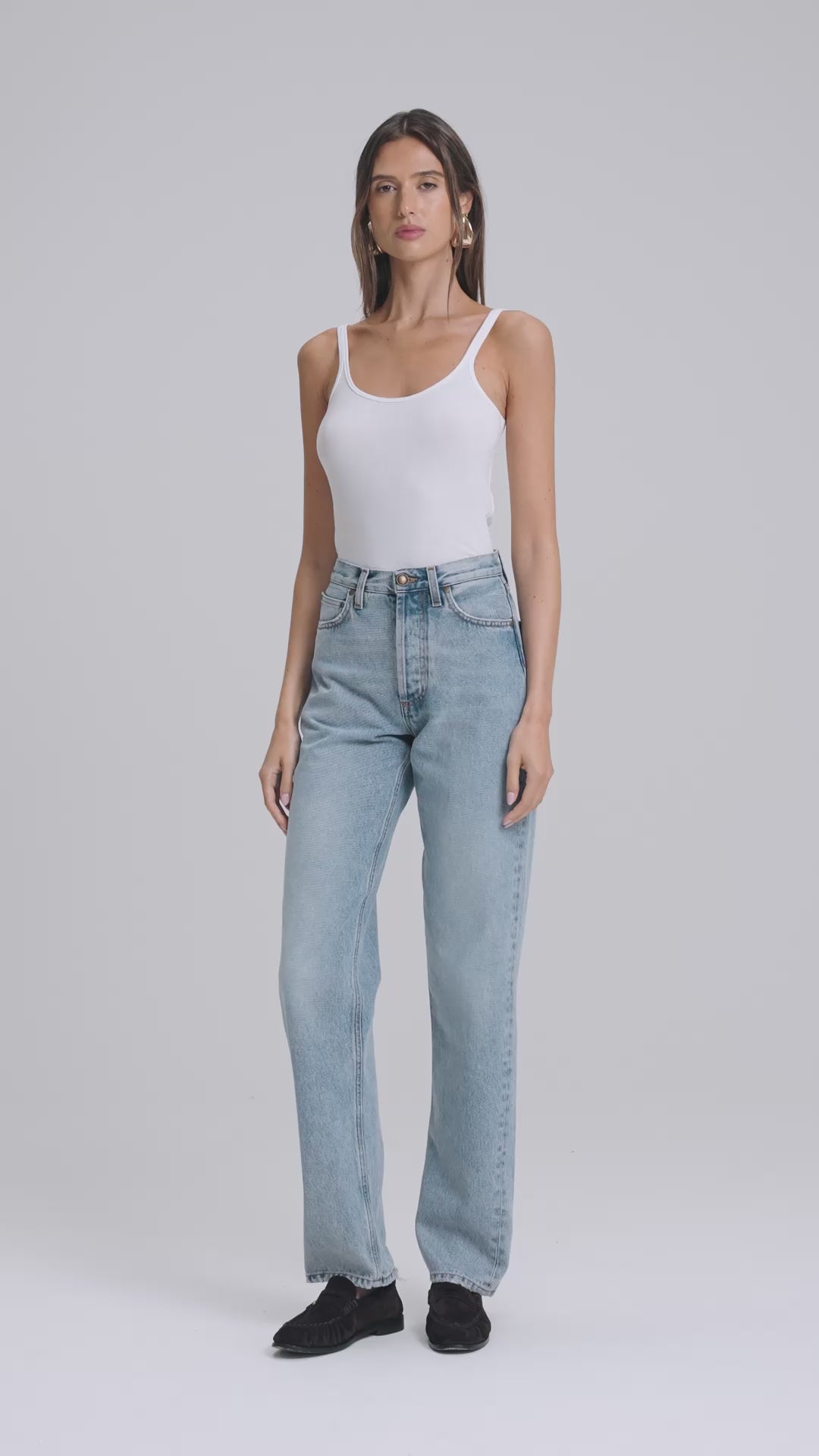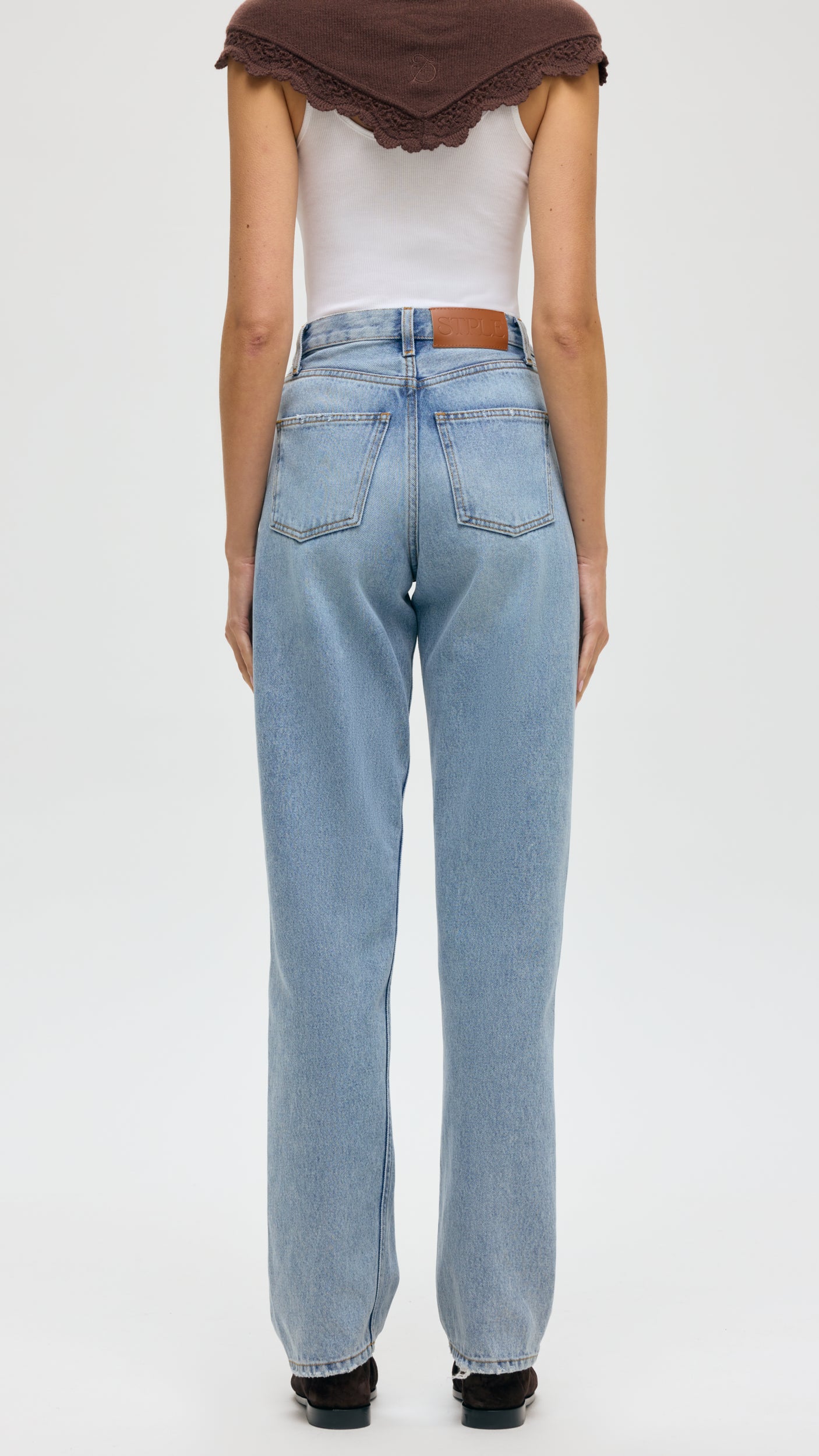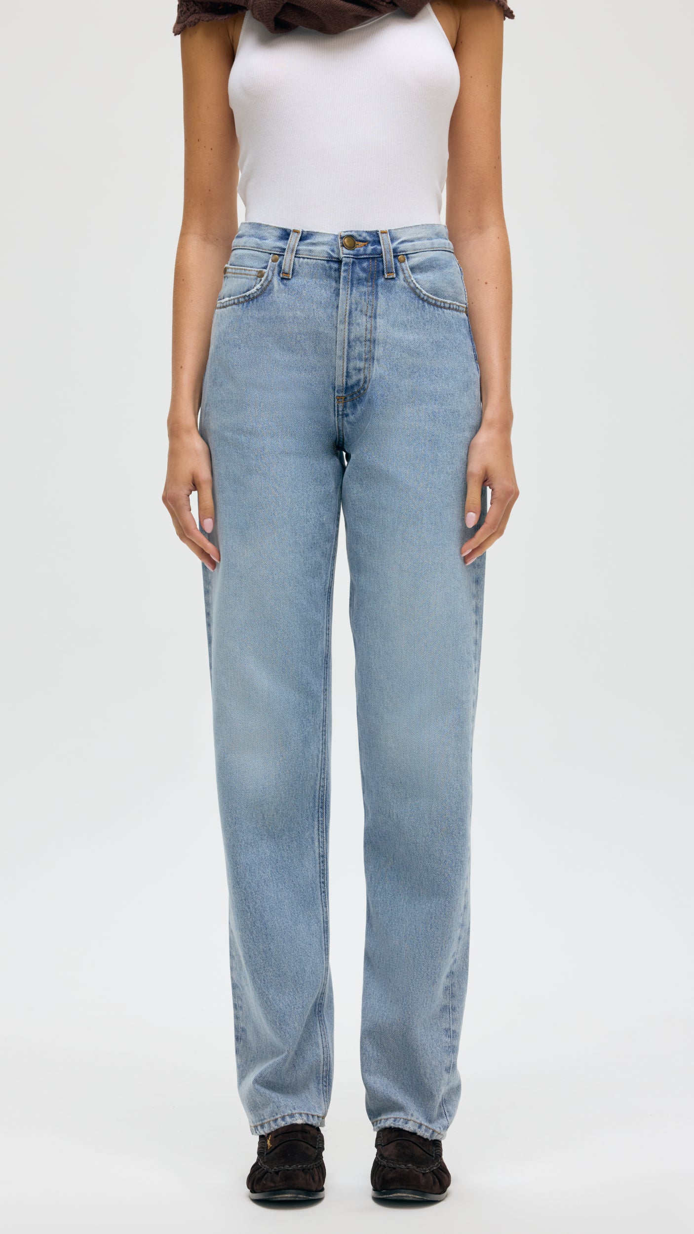 HIGH-RISE STRAIGHT COTTON JEANS IN BLUE DENIM