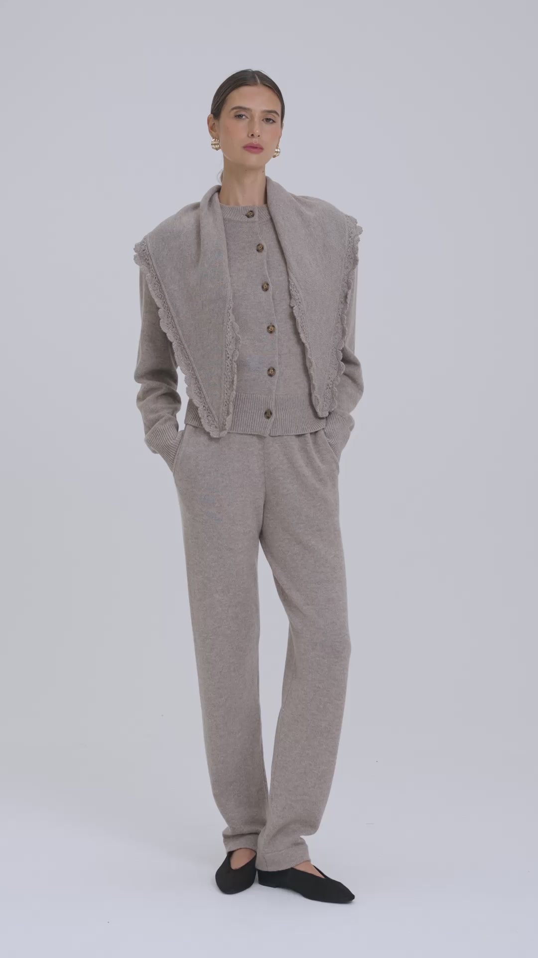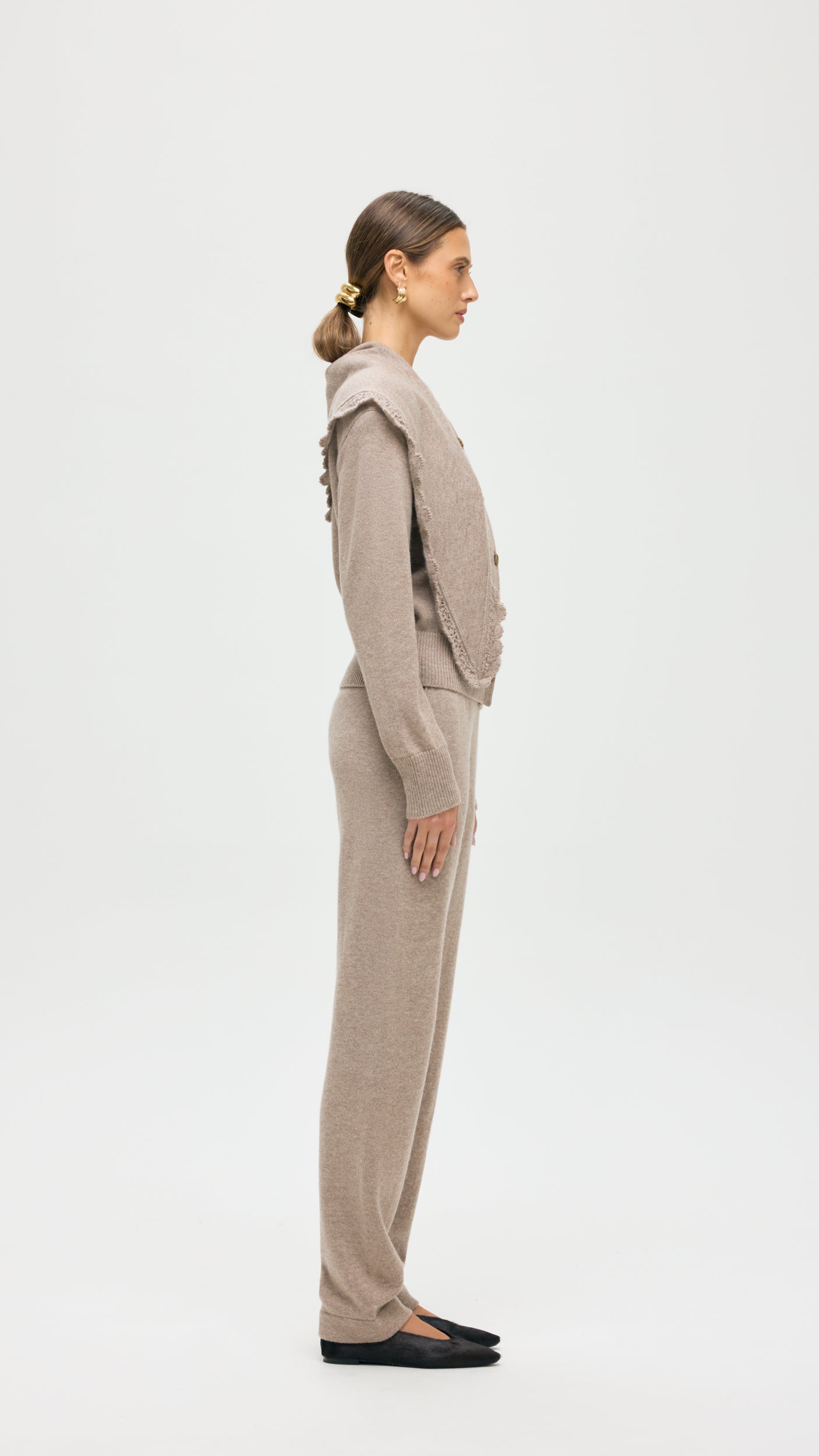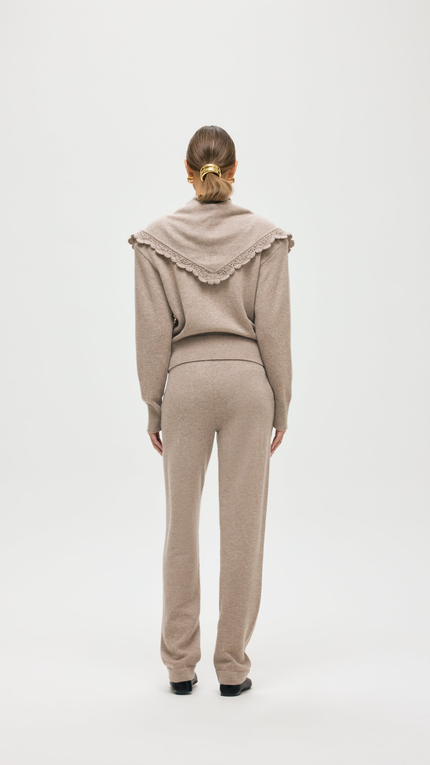 TAPERED CASHMERE AND WOOL KNIT JOGGER IN FLAX